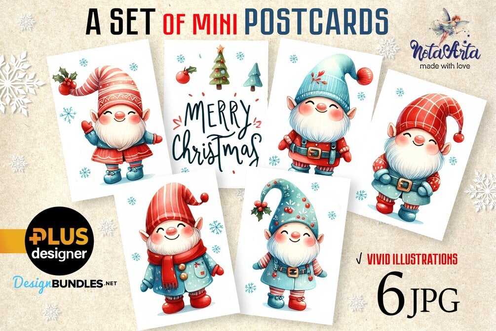 Whimsical Christmas Gnomes Digital Holiday Card Set